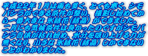 皇居東御苑の「シモバシラ」の紹介です。この「シモバシラ」はシソ科の植物です。皇居東御苑二の丸庭園で見られます。寒い日が続きますと幹の根元に氷結花(氷の結晶)ができます。江戸城のシモバシラ・シモバシラの木・シモバシラの花・シモバシラの氷結花・シモバシラの結晶