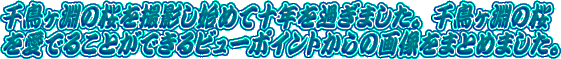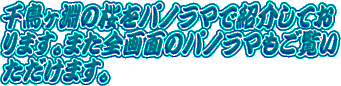 | 千鳥ヶ淵の桜です。千鳥ヶ淵のお濠を一周して、各ポイントからの千鳥ヶ淵の桜と 千鳥ヶ淵の夜桜をパノラマで、また大画面地デジをモニターにしてご覧いただけるフルハイビジョン対応の全画面パノラマでも紹介しております。 |