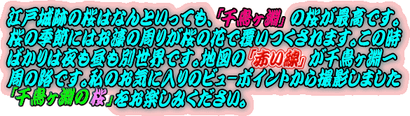 | 『千鳥ヶ淵点描』をご覧いただければ千鳥ヶ淵の桜をご堪能いただけると想います。 |