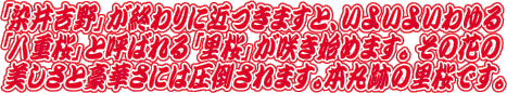 皇居東御苑本丸跡で咲きます里桜(サトザクラ)、ギョイコウ、イチヨウ、フゲンゾウ、アマノガワ、ウコン、アズマニシキ、カンザン、ケンロクエンキクザクラ、タイハク、センリコウです。