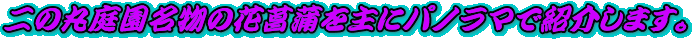 皇居東御苑二の丸庭園の花菖蒲の紹介です。二の丸庭園の花菖蒲は貴重な品種が沢山あるようです。主にパノラマで花菖蒲を紹介しています。皇居東御苑二の丸庭園の花菖蒲の品種別も紹介しています。